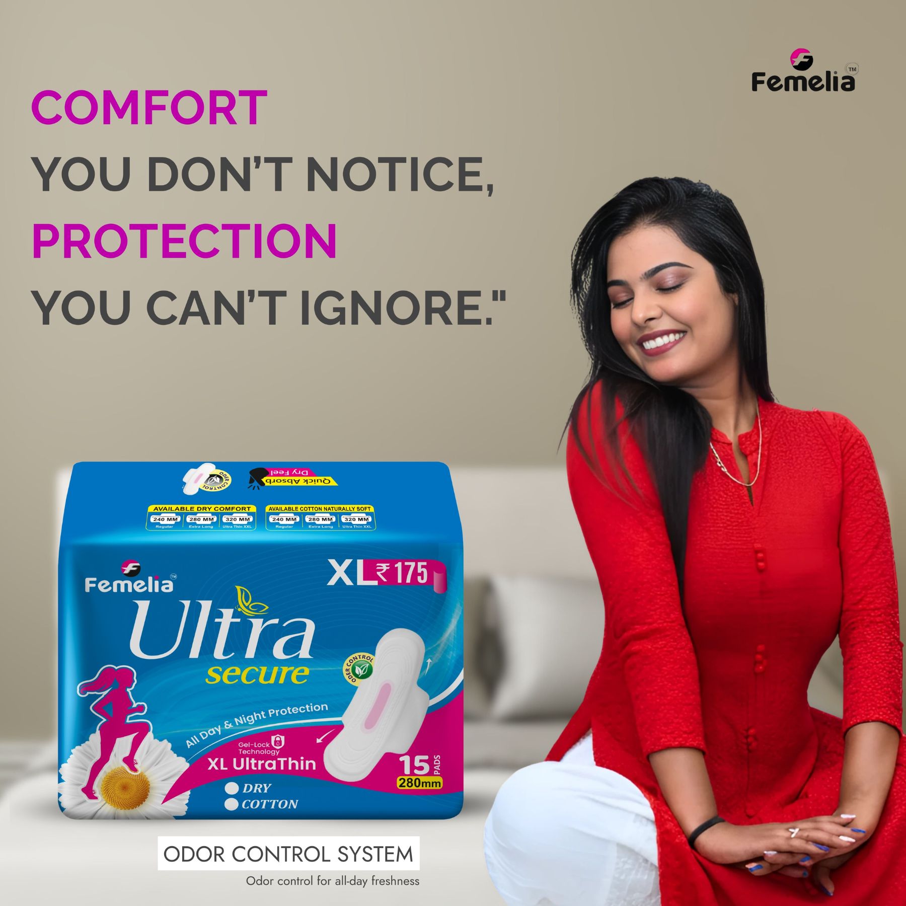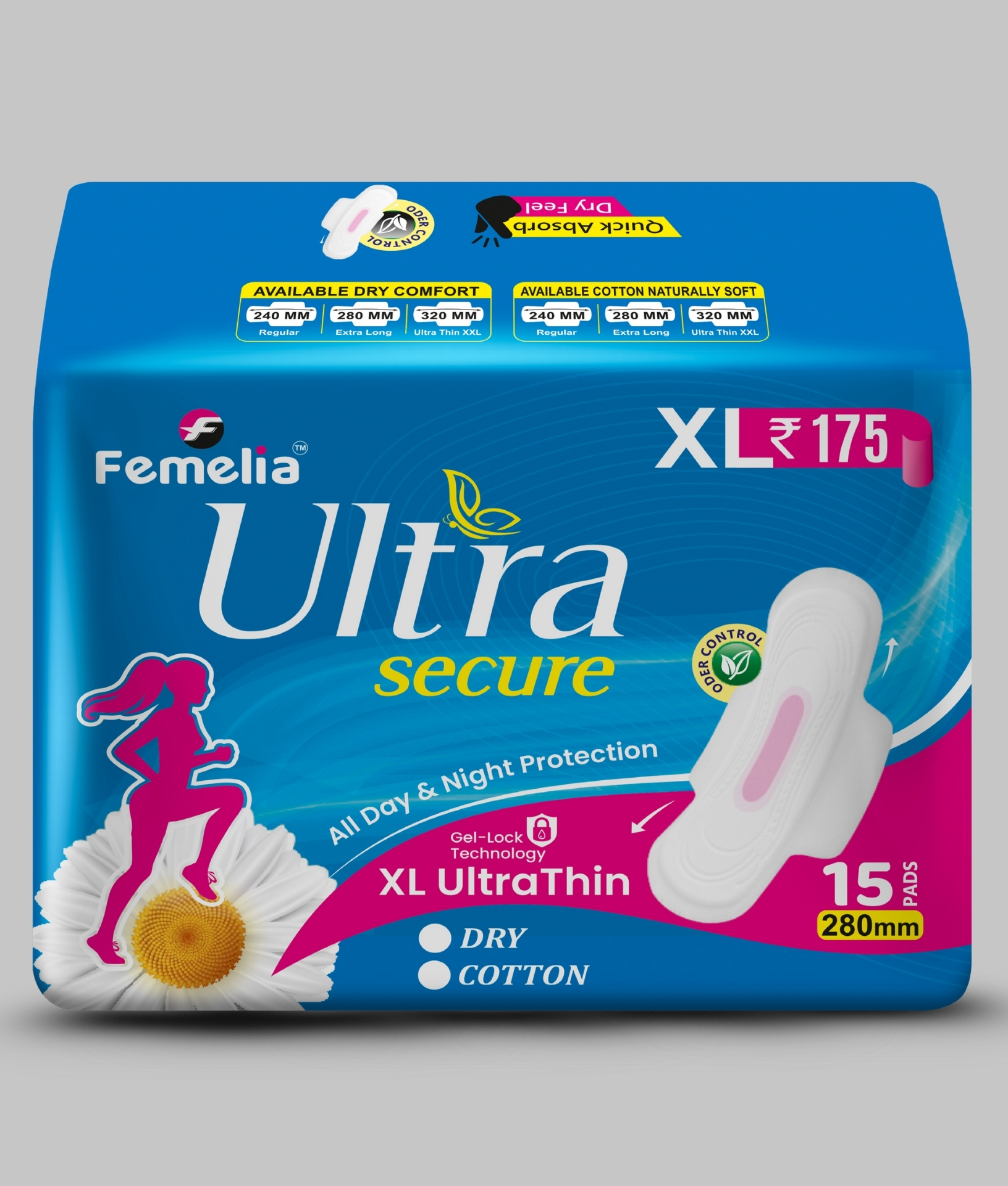 Femelia Ultra Secure Dry Sanitary Pads XL – 15 Pads (280mm)